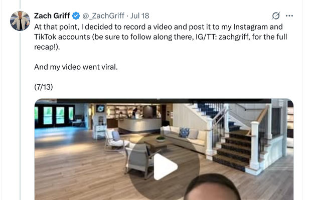 经过三天没有回应后,Zach 开始查找酒店的在线评价,发现有多名顾客报告了与他相同的情况:被错误收取 500 美元的吸烟费,并且在投诉时也遭遇了类似的对待。于是他决定录制视频并在 Instagram 和 TikTok 上发布,结果视频迅速走红。