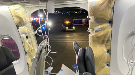 根据照片,推测是一个未使用的紧急出口出现了故障,导致快速减压。这种情况非常严重,幸运的是没有人员伤亡。乘客拍摄的照片和视频可能对随后的调查非常有用,可以将它们与国家运输安全委员会(NTSB)分享。