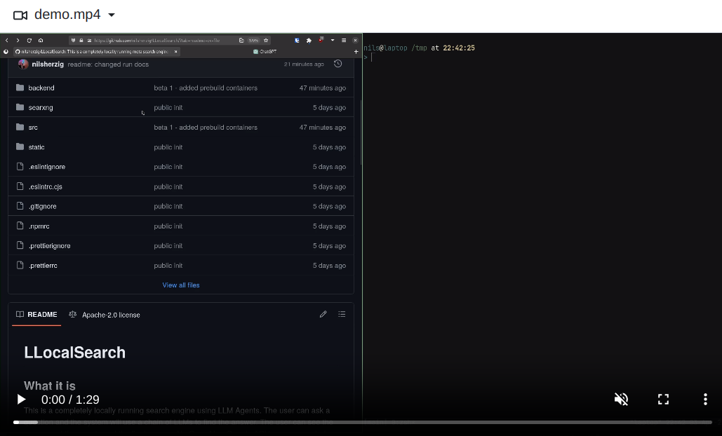 完全本地化(无需 API 密钥) 在“低端”LLM 硬件上运行(演示视频使用 7b 模型) 进度日志,有助于更好地理解搜索过程 可进行后续问题提问 移动友好界面 使用 Docker Compose 快速轻松部署 Web 界面,可轻松从任何设备访问 手工制作的具有浅色和深色模式的用户界面